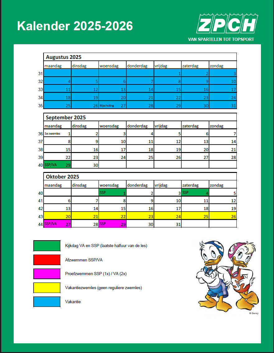 Download hier de kalender. Hierin staan alle speciale data, zoals (zomer)vakantie, proef- en afzwemdagen en kijkdagen overzichtelijk vermeld. Blijf deze pagina in de gaten houden voor eventuele aanpassingen.